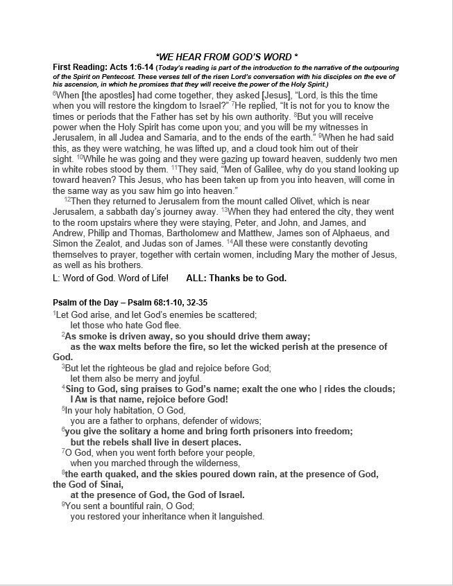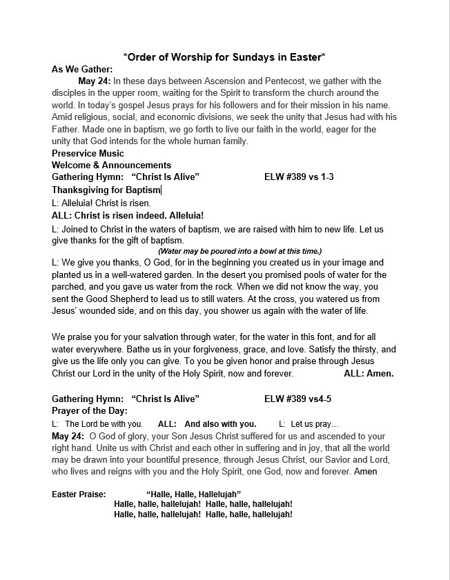 FGTLP Online Worship & Whirl Children's Message: Sunday May 24, 2020