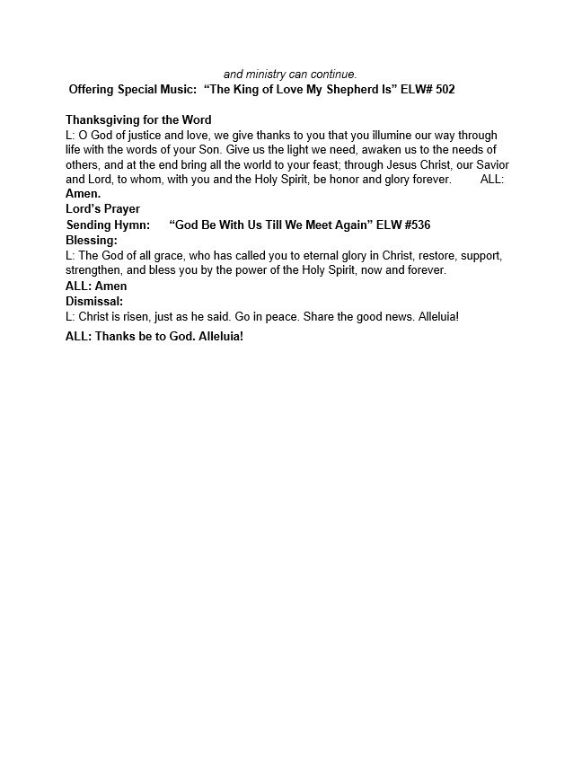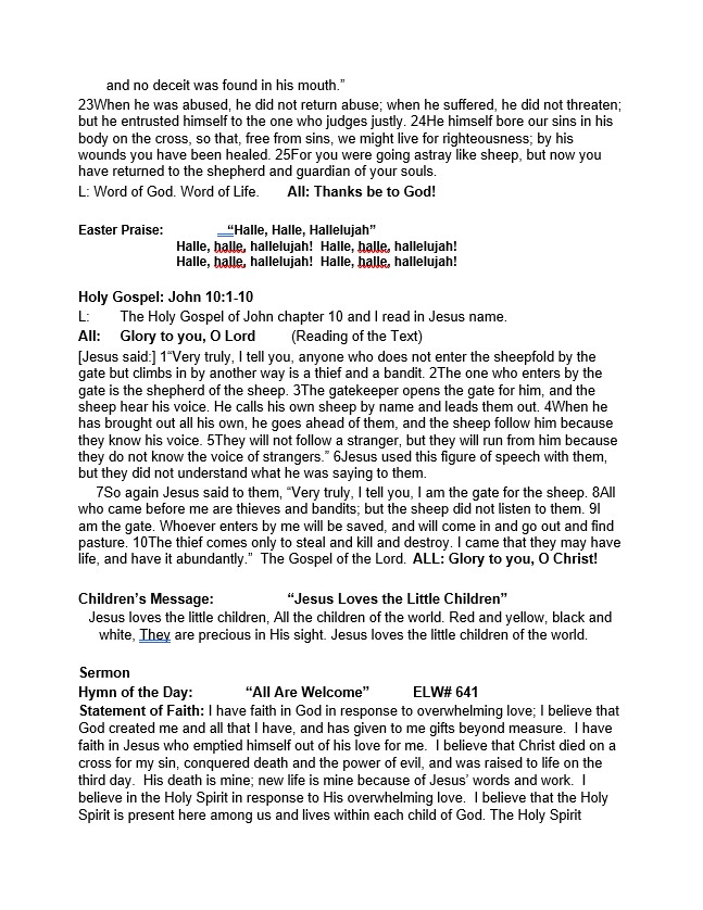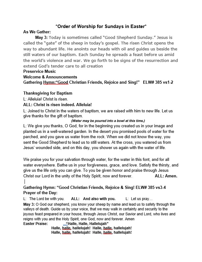 FGTLP Online Worship & Whirl Children's Message: Sunday May 3, 2020